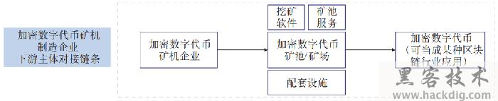 加密数字代币矿机企业主导的产业链协作空间不大,与矿场形成联动,与区块链行业应用基本“绝缘”。加密数字代币矿机企业下游主体对接链条如图2所示。