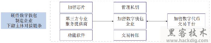 加密数字钱包(主要指冷钱包)应用领域固定,产业链延展性不够。加密数字钱包企业上下游主体对接链条如图3所示。